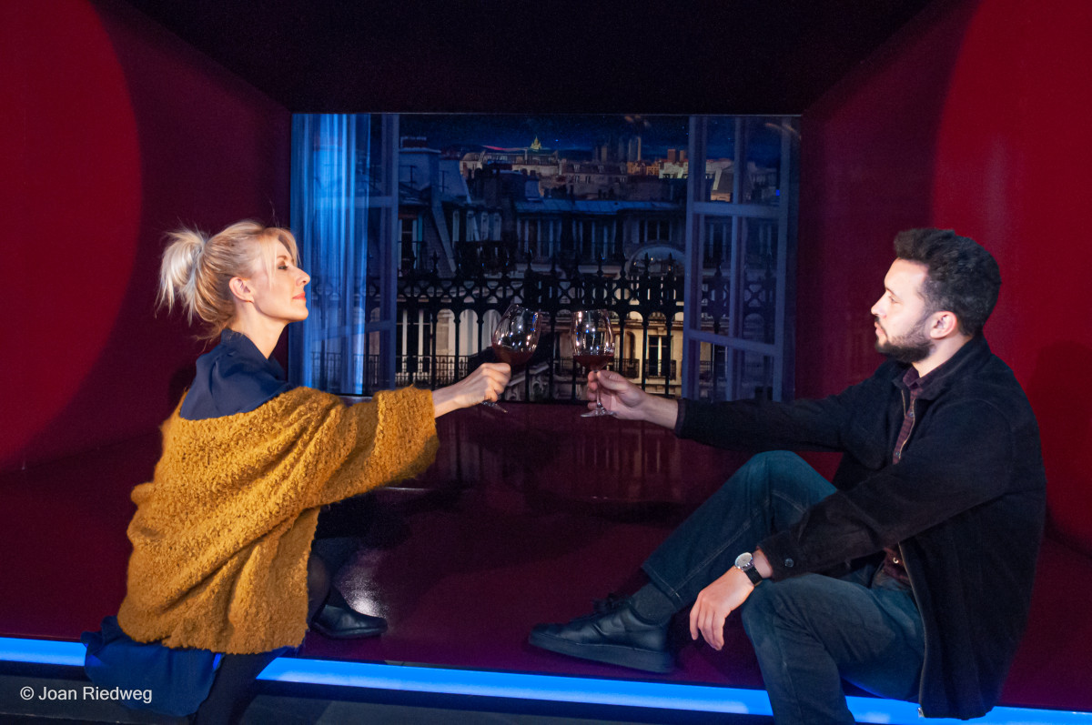 Cayetana Guillén y Ayoub el Jilali desarrollan un excelente trabajo interpretativo que cambia de ritmo y de tono según las circunstancias marcadas por un texto lleno de circunloquios, de envites, de fintas, de dudas, de verdades y mentiras, de tensión, pero también con momentos cálidos, incluso de ternura. Todo ello acompañado por un montaje audiovisual muy conseguido, obra de Joan Riedweg, que logra no solo contextualizar la situación sino, además, en algún momento, provocar incluso el sobresalto del público.