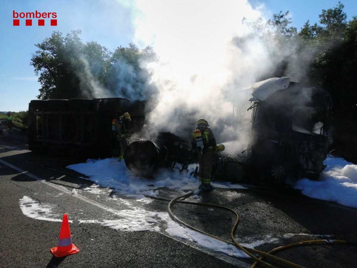 Tres dotaciones de bomberos han trabajado a primera hora de este martes en el incendio de un camión cargado de compuestos orgánicos en la C-62, a la altura de Sant Bartomeu del Grau.