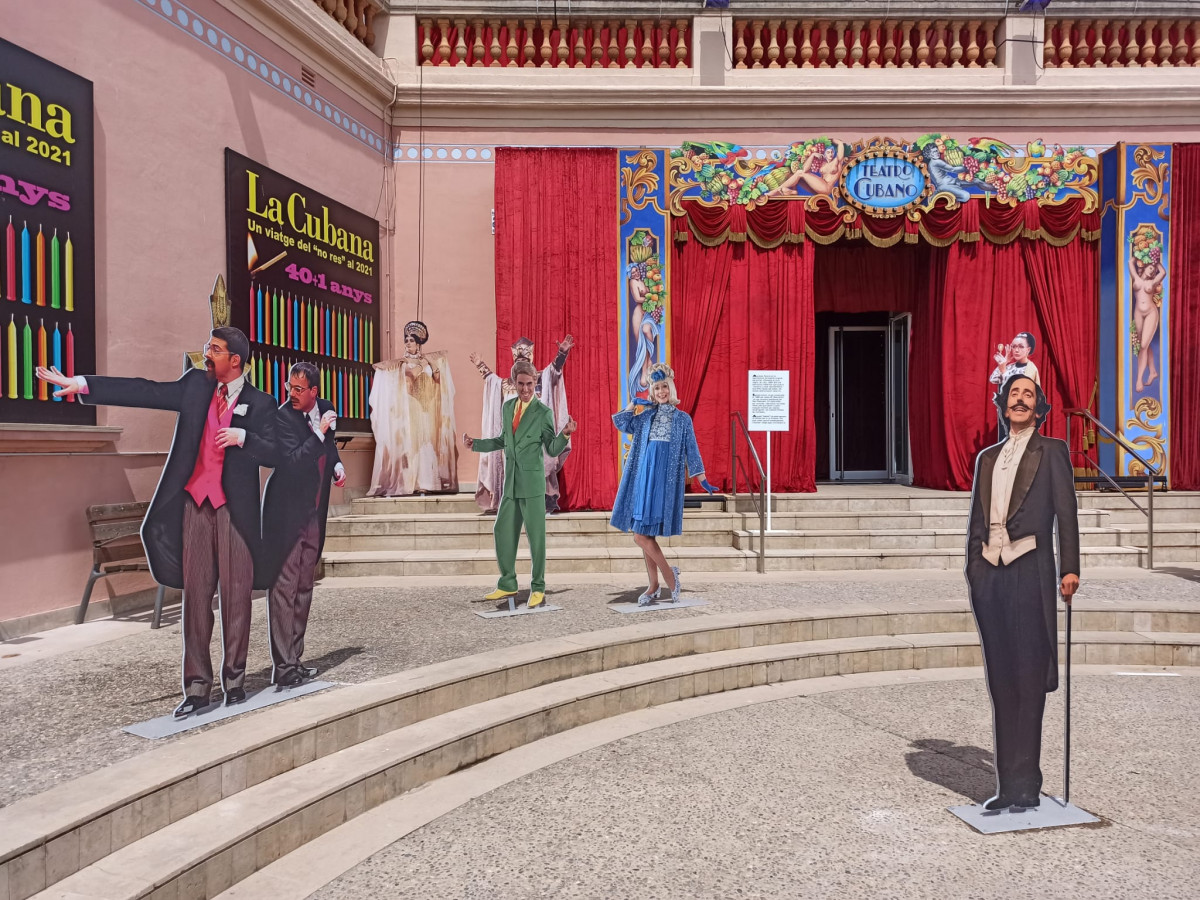 Tuve el privilegio de recibir una ducha de agua fría en el teatro Romea cuando salía de ver “La tempestad” y de ser seleccionado entre el público para salir al escenario en el estreno, en el teatro Victoria del Paralelo, de “Cómeme el coco, negro”. Participé en una merienda colectiva en la calle de Santa Ana de Barcelona tras ver su espectáculo en el Capitol, y luego he tenido ocasión de asistir a casi todos los estrenos de esta compañía que, a estas alturas, forma parte ya con todo merecimiento de la historia del teatro contemporáneo de España. De ahí mi complacencia al ver como La Cubana, que ha llevado su arte por medio mundo, ha logrado alcanzar los cuarenta años (más uno, por culpa de la pandemia) con plena vigencia sin haber parado nunca en su trabajo, y ha querido celebrarlo con una extraordinaria exposición en el edificio Miramar de Sitges.