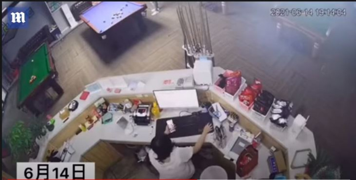 Pues en China parece que el billar se ha vuelto un deporte de alto riesgo. La recepcionista de este salón de recreativos ha sufrido un golpe con una de las bolas mientras estaba sentada trabajando directamente.