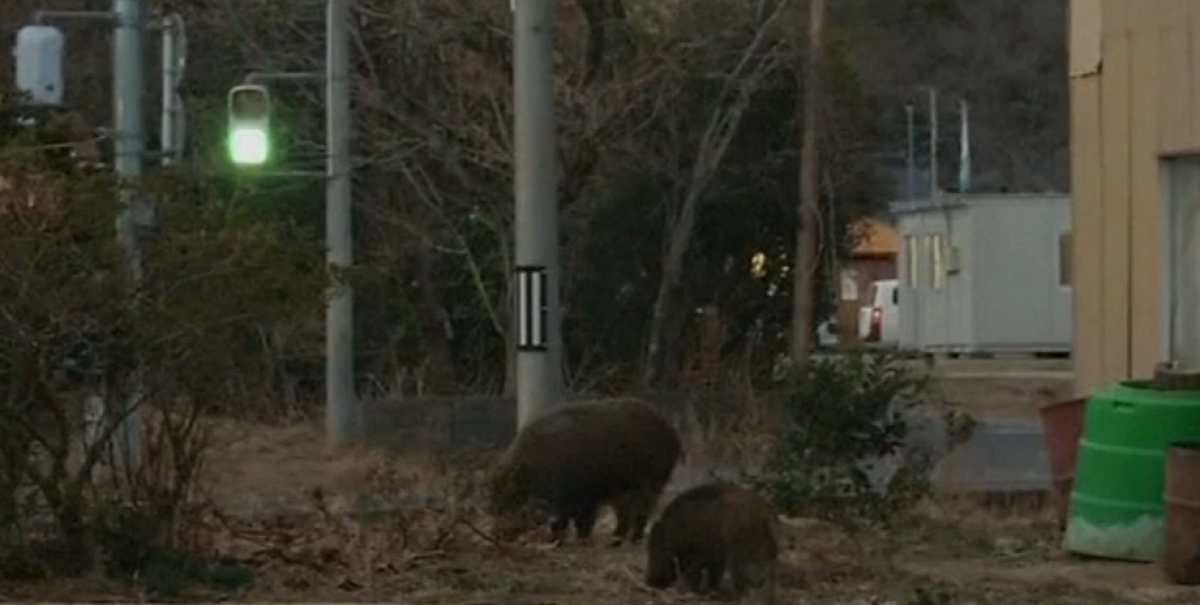 Descubrieron que el jabalí japonés, el jabalí local del país, ha invadido un área que alguna vez estuvo habitada por 160.000 personas, según un estudio sobre la vida silvestre en la región. Quienes los han visto los describen como "arrogantes y agresivos". También comenzaron a cruzarse con los cerdos domesticados que habían escapado y que habían dejado atrás sus dueños anteriores.