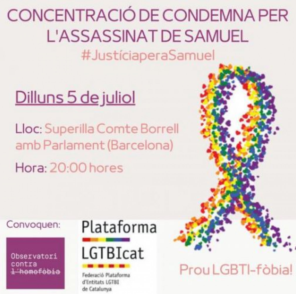 En Barcelona, la concentración se llevará a cabo este lunes día 5 de julio a las 20:00h en la Superilla Comte Borrell con el Parlament.