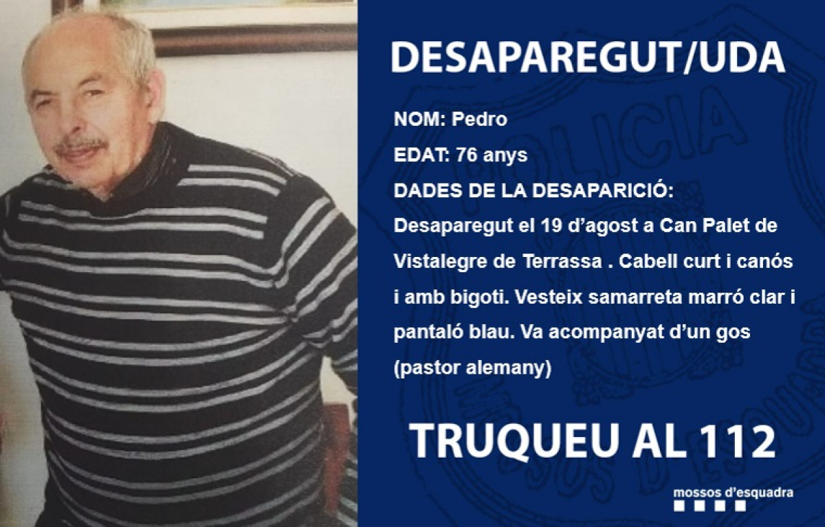 Los Mossos d'Esquadra encuentran a Pedro sano, el hombre desaparecido en Terrassa