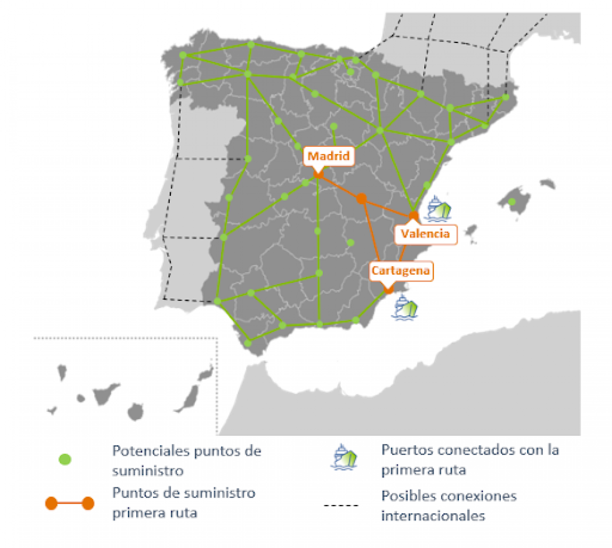 Las tres compañías están ya diseñando la primera ruta que permitirá suministrar H2 verde en las localidades de Madrid, Valencia y Murcia/Cartagena, así como interconectarlas a través de un corredor de hidrogeno, facilitando así el movimiento entre estas zonas mediante vehículos propulsados por este combustible sostenible. La elección de esta primera ruta se ha llevado a cabo teniendo en cuenta el alto volumen de trasporte pesado, tanto de mercancías como de pasajeros.