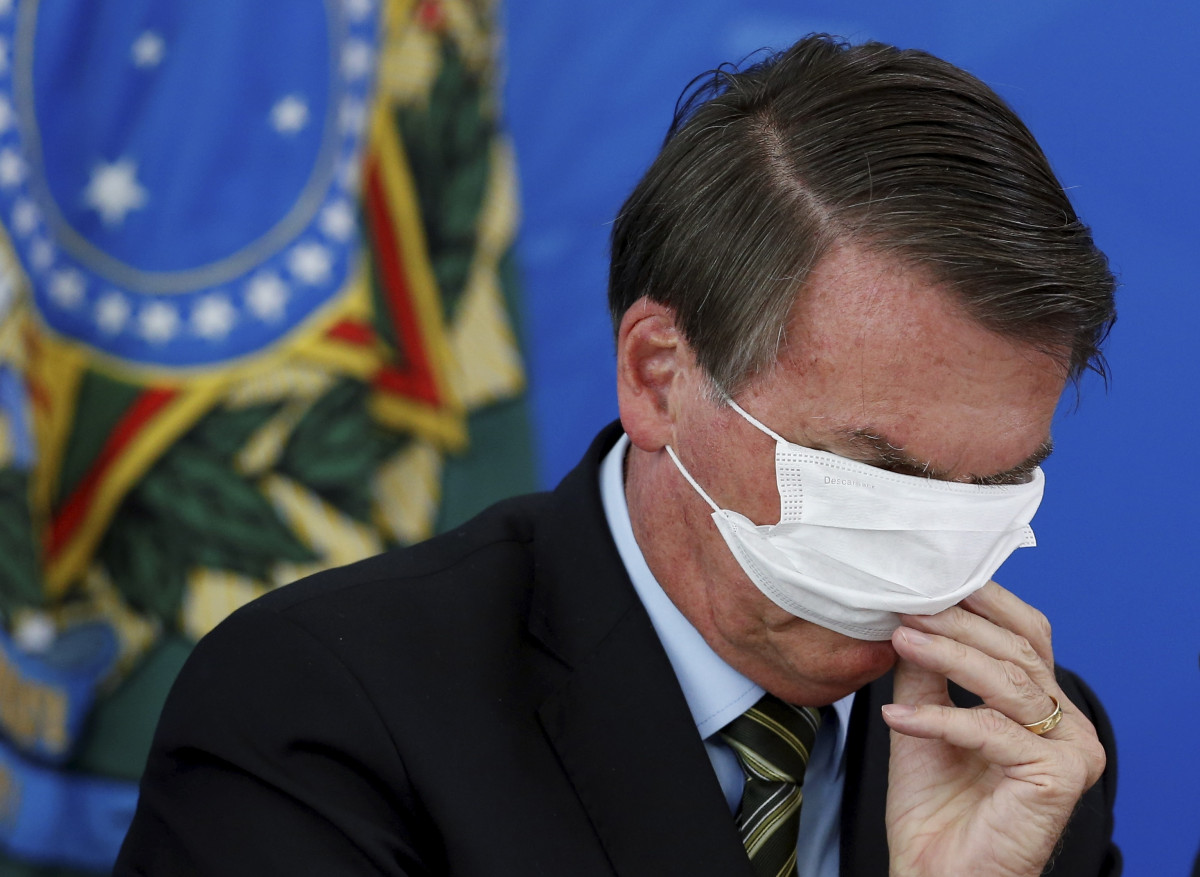Jair Bolsonaro se confunde al ponerse una marcarilla @ep