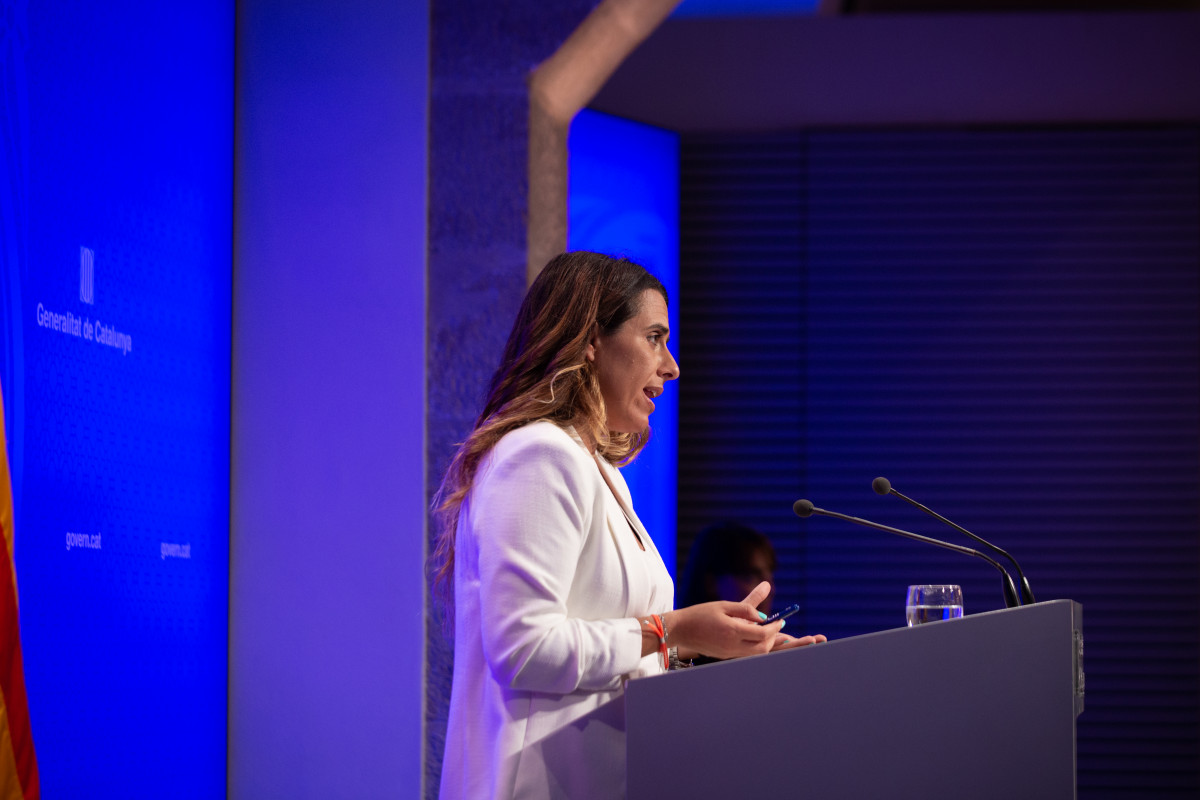 La portavoz del Govern de la Generalitat, Patrícia Plaja, ofrece una rueda posterior al Consell Executiu, a 21 de septiembre de 2021, en Barcelona, Cataluña, (España). La portavoz ha anunciado este martes que el Ejecutivo catalán ha aprobado su plan de go