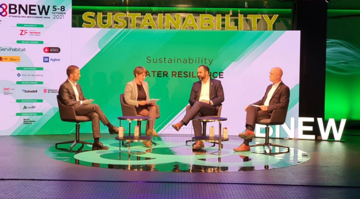 En la conferencia "Water Resilience' organizada por el BNEW2021 en el Roca Barcelona Galery donde ha participado Antoni Ventura-Ribal Gerente de Aigües de Manresa, Xavier Bernat Director de Transició Ecològica y Justa de Aigües de Barcelona, Xavier Amores Director de CatalanWater y ha moderado Sandra Casas de Eurecat se ha debatido sobre los efectos del cambio climático en uno de los recursos más necesarios para la vida, el agua.