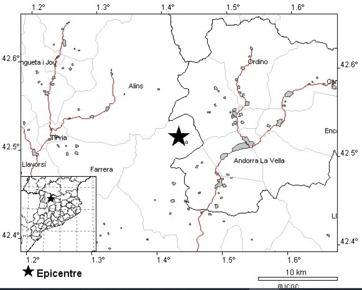 Protección Civil de la Generalitat ha detallado en un tuit recogido por Europa Press que el sismo se ha registrado a las 10.23 horas en el municipio de Valls de Valira y que el teléfono de emergencias 112 ha recibido una llamada por el temblor realizada desde la localidad de Farrera.