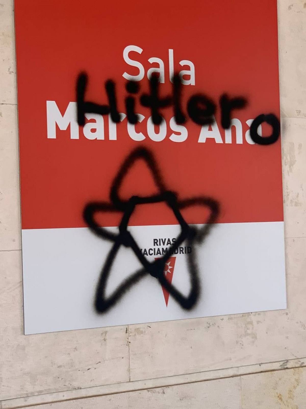 De esta forma, se aprecian diversas esvásticas en partes del inmueble, símbolo del régimen nazi, y en la placa dedicada al poeta Marcos Ana, que fue miembro del PCE, se pintó la palabra 'Hitler' y también un símbolo que se asemeja a la insignia judía que empleaba el nazimos.