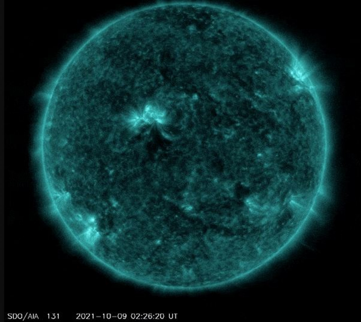 La CME se asoció con una llamarada solar de clase M1.6 de la Región Activa 2882 que alcanzó su punto máximo el 9 de octubre a las 6:38 UTC. Las llamaradas de clase M son una décima parte del tamaño de las más intensas, las llamaradas de clase X. El número proporciona más información sobre su fuerza. Un M2 es dos veces más intenso que un M1, un M3 es tres veces más intenso, etc.