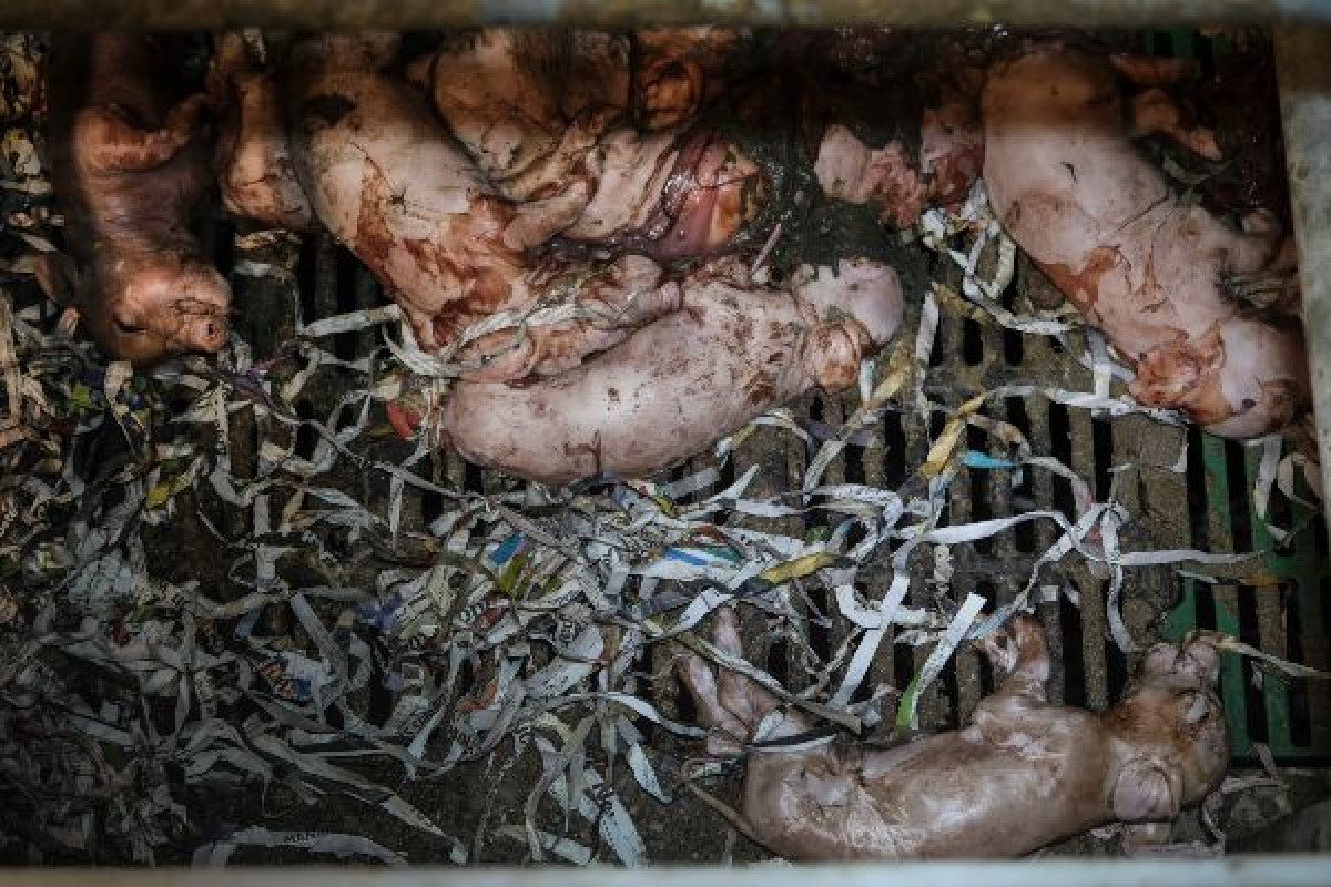 La instalación a la que ha podido acceder Greenpeace (con equipos EPIS y exhaustivas medidas de bioseguridad) es una enorme nave dedicada a la “producción y cría” de lechones. En su interior se documentaron escenas de madres recién paridas, o incluso pariendo en ese momento, sin ningún tipo de asistencia y con numerosos lechones muertos en minúsculas jaulas llenas de heces, además de roedores por doquier y mucha suciedad. Todo esto contrasta con la imagen que ofrece la empresa en sus comunicaciones en las que los animales viven en un ambiente totalmente diferente.