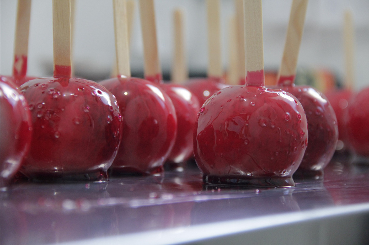 En Estados Unidos es típico ver calabazas para celebrar Halloween y comen tartas y bizcochos hechos con ellas. Pero también es un alimento típico de Halloween la candy apple o manzana de caramelo. Para hacer 12 manzanas caramelizas, además de las frutas necesitarás 12 palitos de helado, una cucharadita de aceite, 4 tazas de azúcar blanco, una taza y un cuarto más de agua y media cucharadita de colorante rojo.