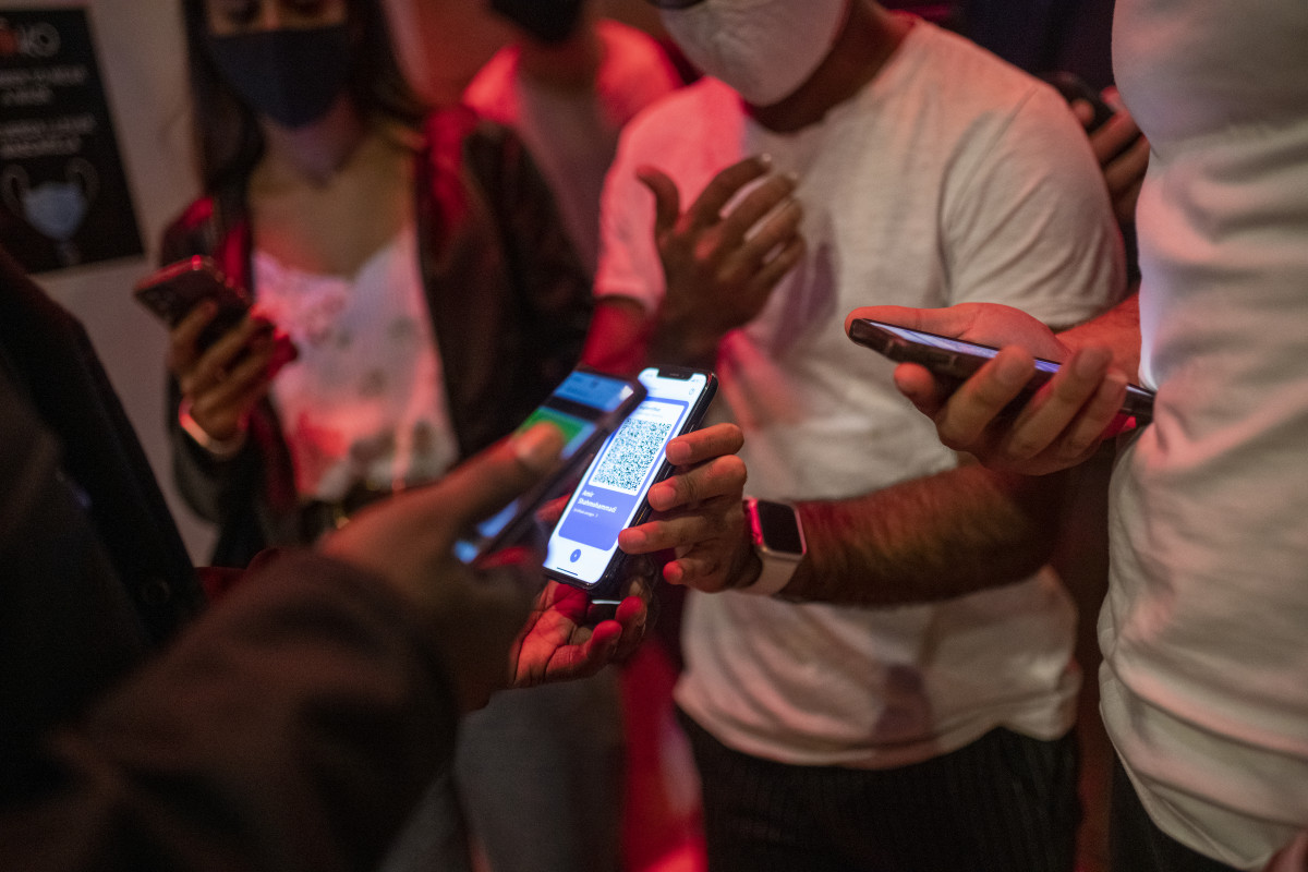 Una persona enseña el certificado Covid-19 para entrar a una discoteca @ep
