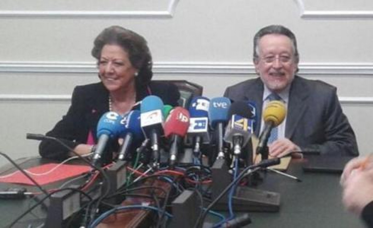 El hasta ahora vicealcalde y la primera edil han entrado juntos en la sala de reuniones del Ayuntamiento, donde se ha celebrado la comparecencia, ante una elevado número de fotógrafos, cámaras de televisión y redactores que les estaban. La dimisión se produce en plena semana grande de Valencia, durante las fiestas de Fallas.
