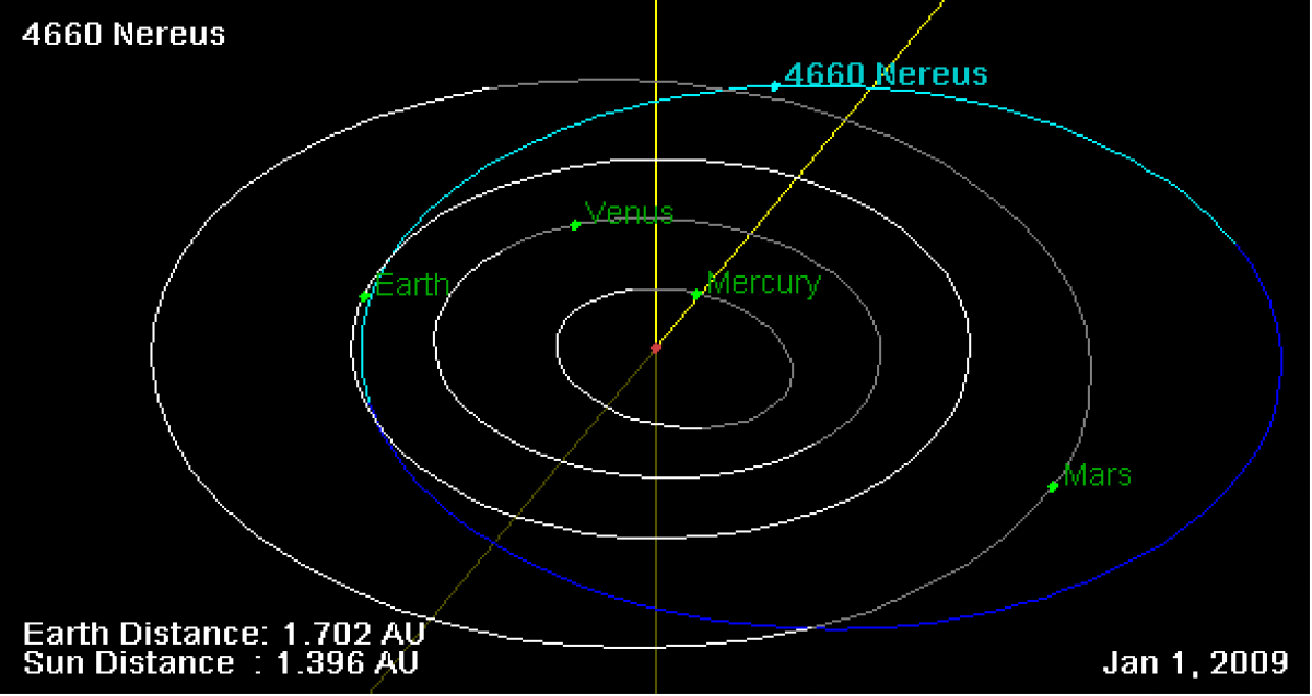 Como asteroide de clase Apolo, la órbita de Nereus lo sitúa con frecuencia cerca de la Tierra. De hecho, su resonancia orbital es de aproximadamente 2: 1. Esto significa que una misión para explorar el asteroide es muy factible. Los científicos han dado a una misión de exploración hipotética en Nereus un delta-v (una medida de varios valores y factores que determinan qué tan difícil sería maniobrar adecuadamente una nave espacial durante el despegue y / o aterrizaje) de aproximadamente 5 km/s. Esto es significativo, ya que el delta-v de la Luna es de alrededor de 6 km/s. De hecho, en 2000, la NASA clasificó a Nereus como uno de los valores delta-v más bajos de los objetos cercanos a la Tierra.