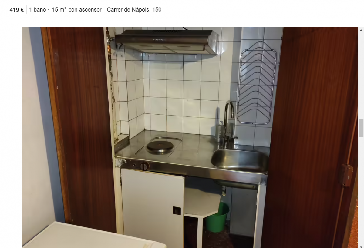 Este viernes en CatalunyaPress os traemos un buen ejemplo de lo mencionado: un espacioso apartamento de 15 metros cuadrados situado en la céntrica calle de Nàpols que vale solo 419 euros. Sin duda, una perfecta opción para independizarse con 30 años y un sueldo de 1.000 euros, empezando una vida con grandes objetivos como alquilar un piso de 30 metros cuadrados al llegar a los 40. El sueño catalán.