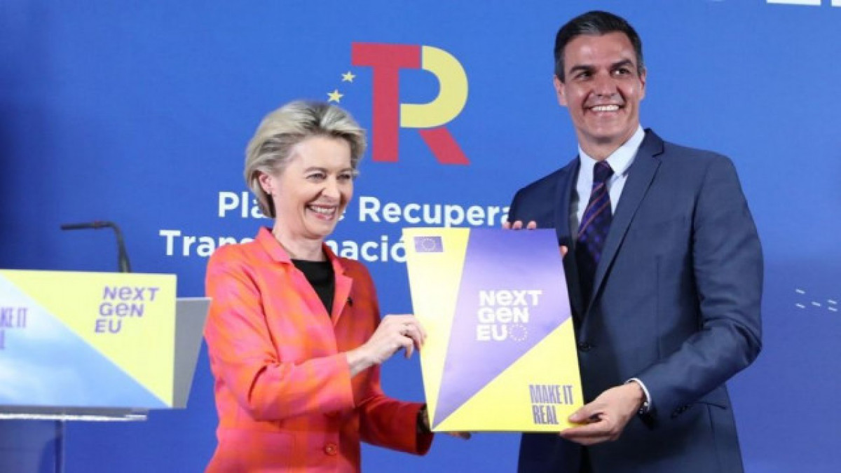 Ursula von der Leyen, presidenta de la Comisión Europea, con Pedro Sánchez, presidente del Gobierno, presentando los fondos Next Generation /@Moncloa