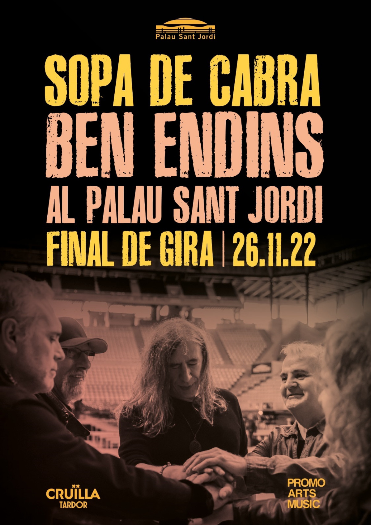 El grupo Sopa de Cabra cerrará el 26 de noviembre de 2022 en el Palau Sant Jordi de Barcelona la gira del 30 aniversario del disco 'Ben endins', en el marco del Cruïlla de Tardor, ha informado este lunes en un comunicado.