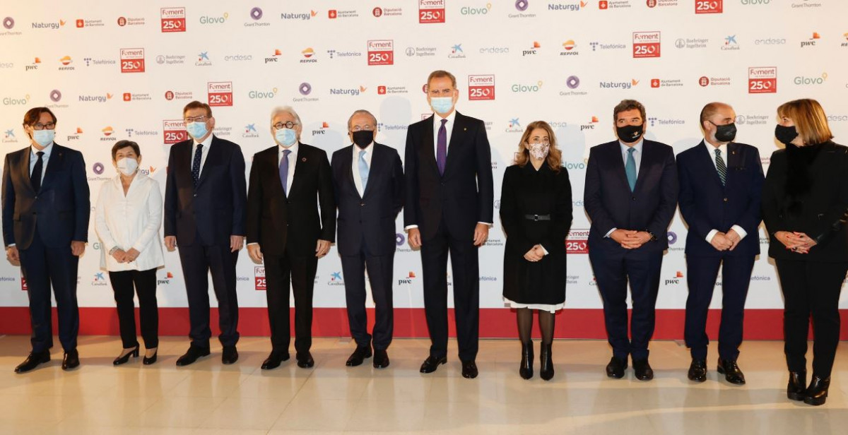 El presidente de la Fundación la Caixa y presidente del Consejo de Administración de Criteria, Isidre Fainé, ha destacado el binomio "económico y de labor social" de CaixaBank en su discurso de este lunes tras recibir la Medalla Conmemorativa del 250 aniversario de Foment del Treball en el Museu Nacional d'Art de Catalunya (MNAC), en el que han participado el Rey Felipe VI, el presidente de la Generalitat, Pere Aragonès; los ministros Raquel Sánchez y José Luis Escrivá; el conseller Roger Torrent y la alcaldesa de Barcelona, Ada Colau.