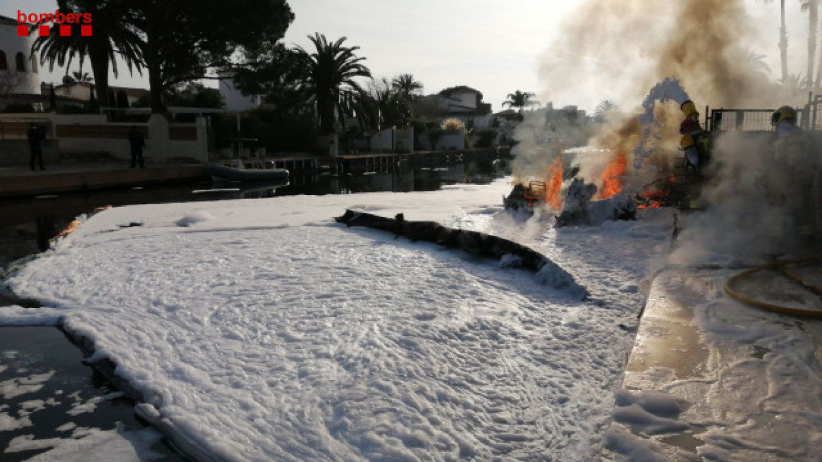 Dos embarcaciones de recreo, de entre siete y diez metros de eslora, han quemado este mediodía en el incendio desatado por causas que se investigan en un canal de la localidad ampurdanesa de Castelló d'Empúries.