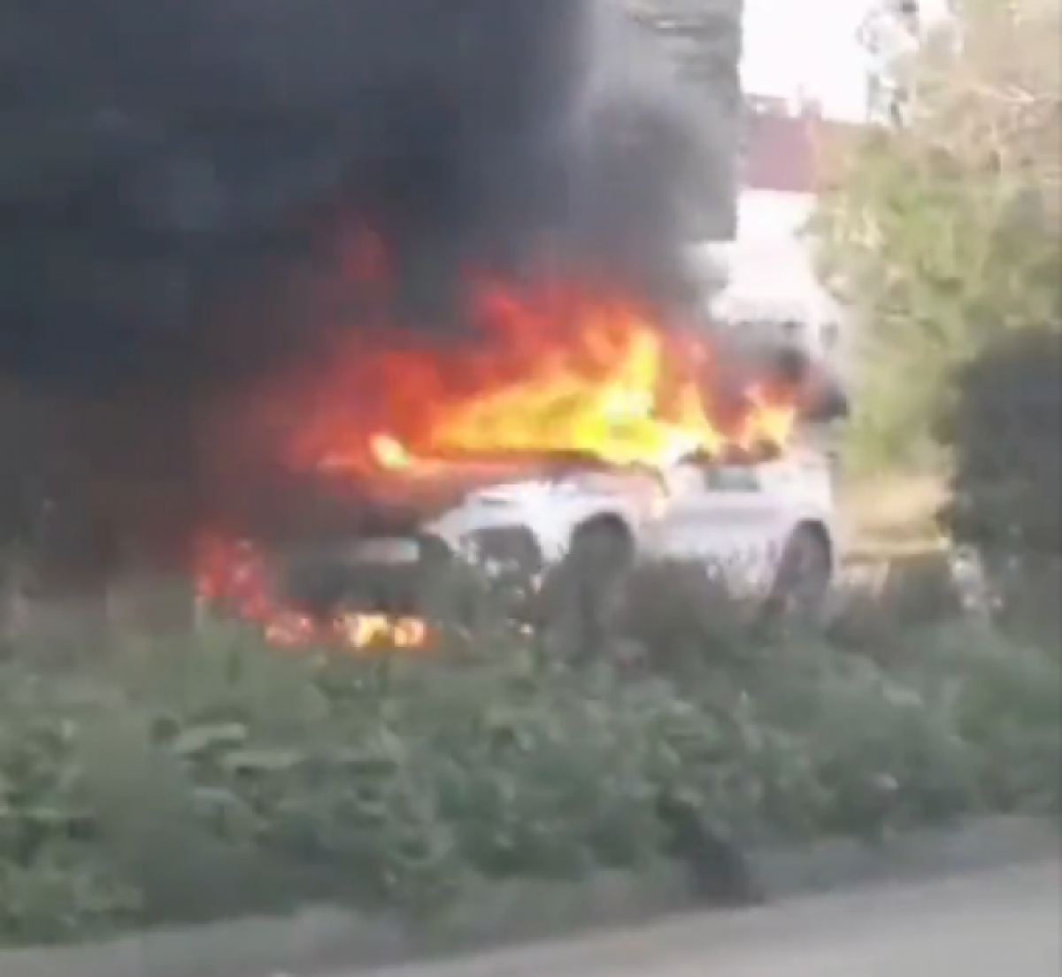 VÍDEO. Impactante incendio de un coche de los Mossos mientras trasladaba a un detenido