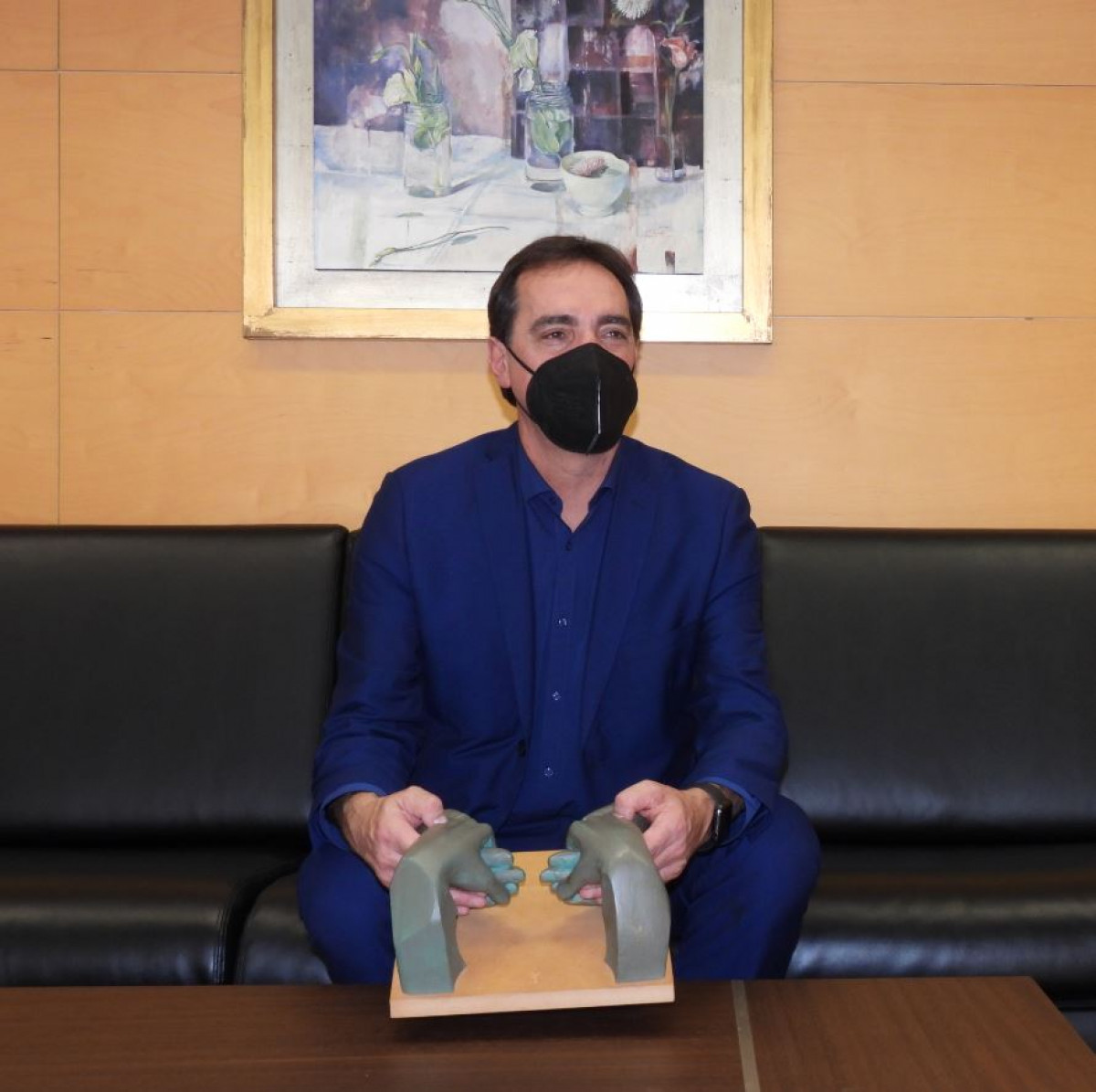 La imagen del primer ciego vendiendo la lotería social de la ONCE preside el despacho de Enric Botí/ @Catalunyapress