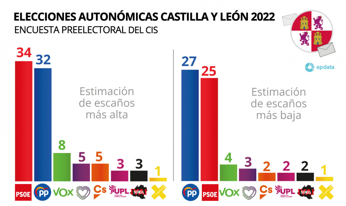 Así, mientras que Tudanca espera repetir y ampliar la victoria de la pasada cita electoral ante la perspectiva de la encuesta publicada este lunes por el CIS, que da como vencedor al PSOECyL con entre 29 y 34 escaños, Mañueco confía en mantenerse al frente de la Junta bajo la promesa de gobernar con "moderación", pero también con "determinación" y sin aceptar "chantajes".