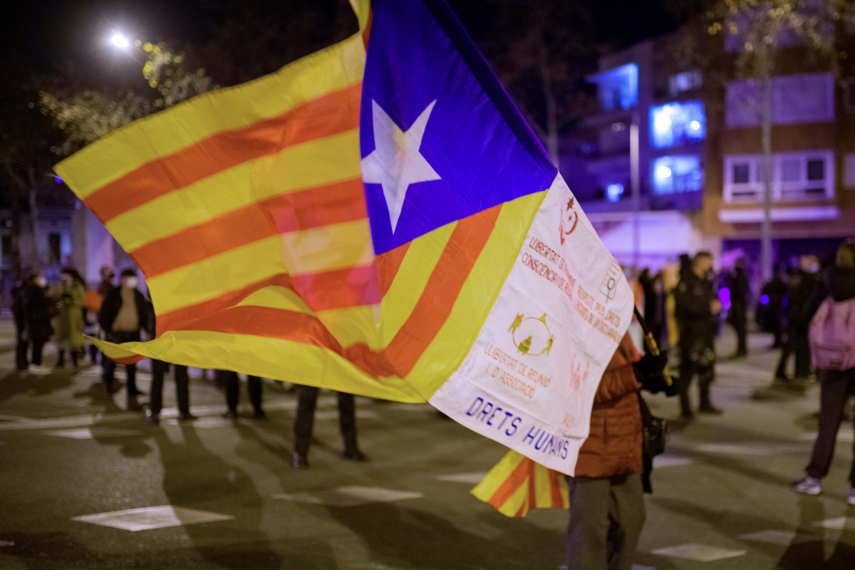 Una persona agarra una bandera durante los cortes en la Meridiana @ep