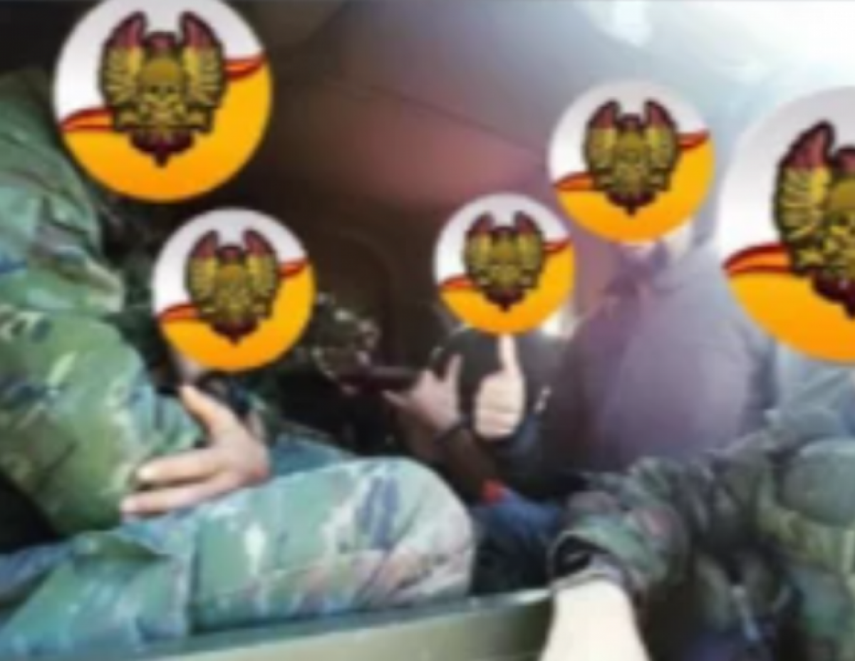 Supuestos voluntarios españoles del Batallón Azov saludando a los miembros de un grupo de reclutamiento