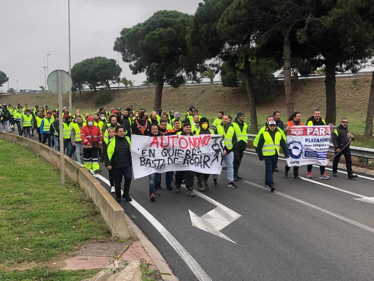 Unos 200 transportistas, según datos de la Guardia Urbana, que secundan la huelga indefinida /@EP
