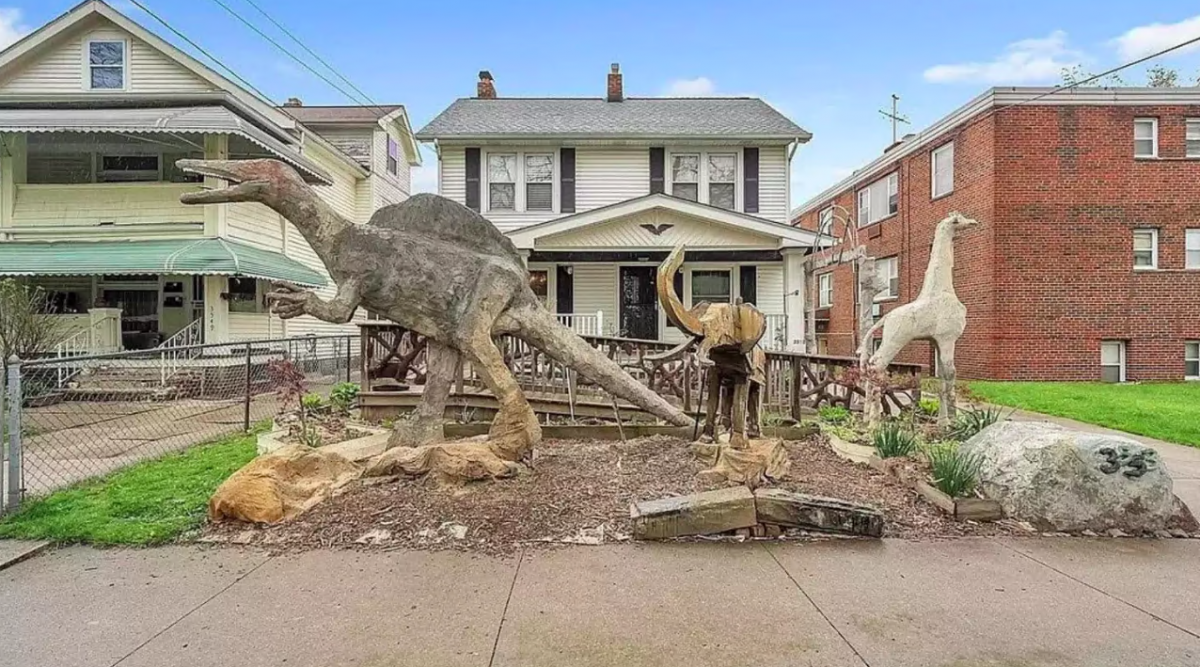 Una casa con tema de dinosaurio ha salido al mercado por £ 133,000 en Cleveland, Ohio, EE. UU.