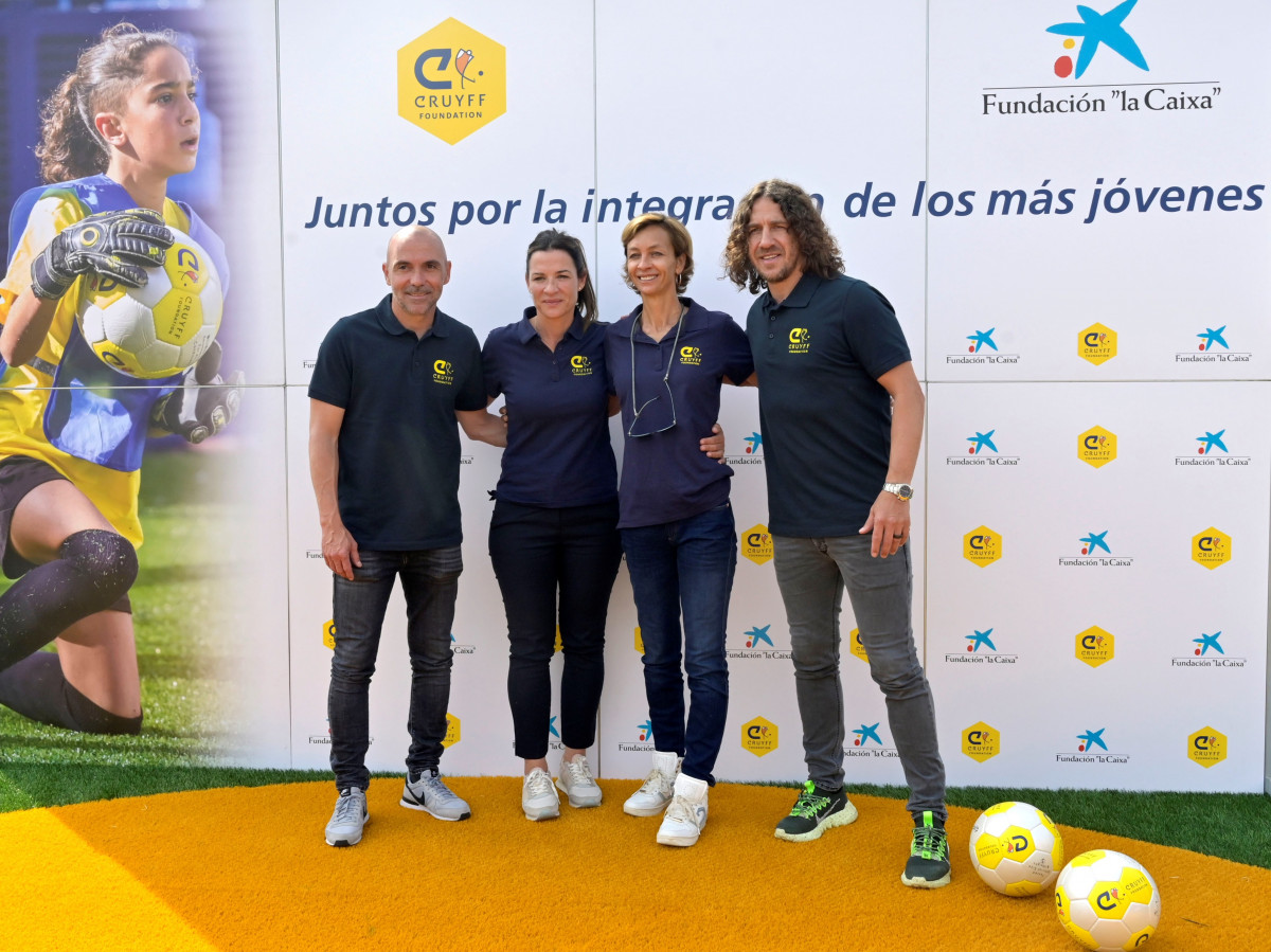 El ex jugador del FC Barcelona y del RCD Espanyol, y padrino del Cruyff Court, Iván de la Peña; el patrón de la Fundación Cruyff Carles Puyol; la presidenta de la Fundación Cruyff, Susila Cruyff; la directora de la Fundación Cruyff, Pati Roura; el responsable comercial del Área Corporativa de Educación y Marketing de la Fundación “la Caixa”, Alejandro Fernández; y la alcaldesa de Santander, Gema Igual; han inaugurado hoy el Cruyff Court Iván de la Peña en Santander, un proyecto social con el que se apuesta por el deporte como vía de inclusión, cohesión y transformación social en los barrios de las ciudades.