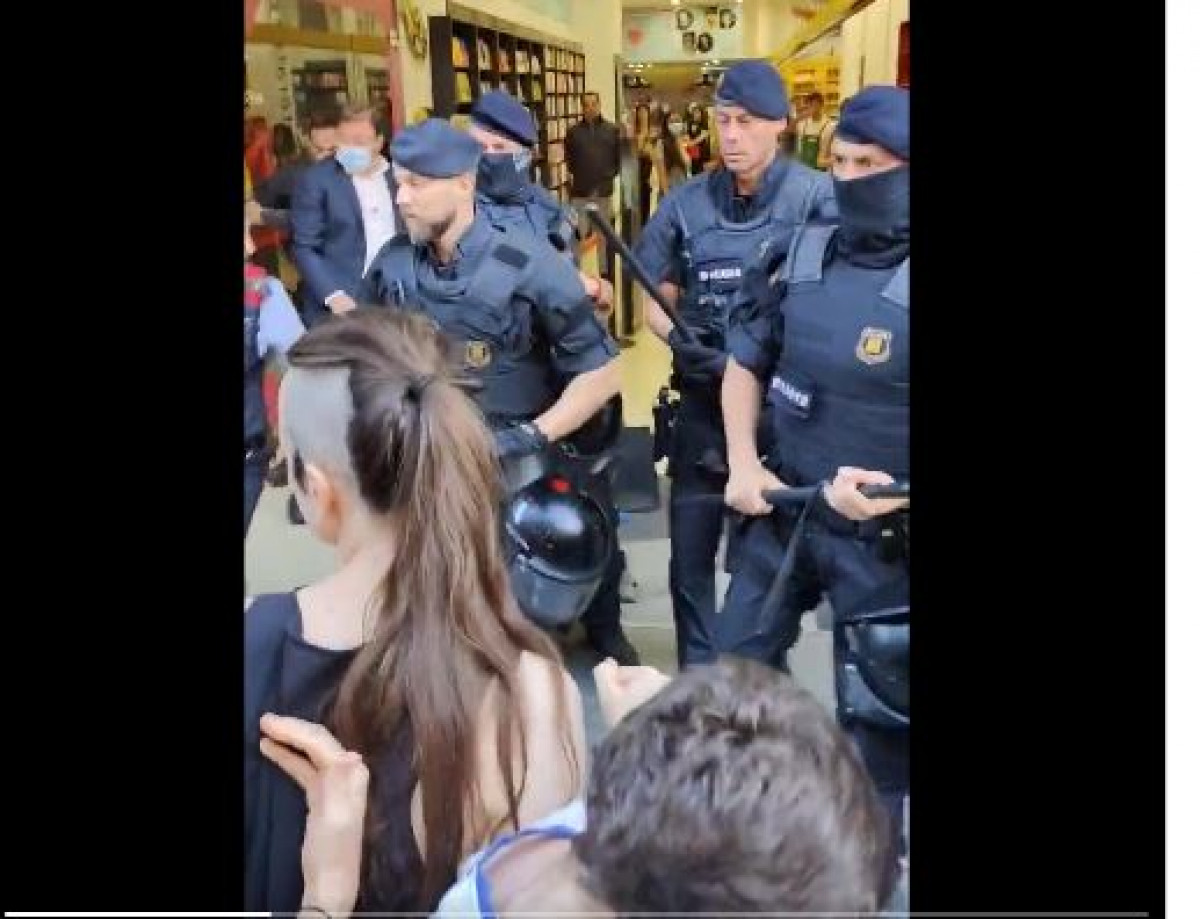 Una unidad antidisturbios de los Mossos d'Esquadra se ha trasladado hasta allí para proteger la entrada de la Casa del Libro durante la presentación de Errasti y Pérez Álvarez. Miembras la gente entraba los manifestantes que proferían insultos desde la puerta, no han conseguido acceder al evento.