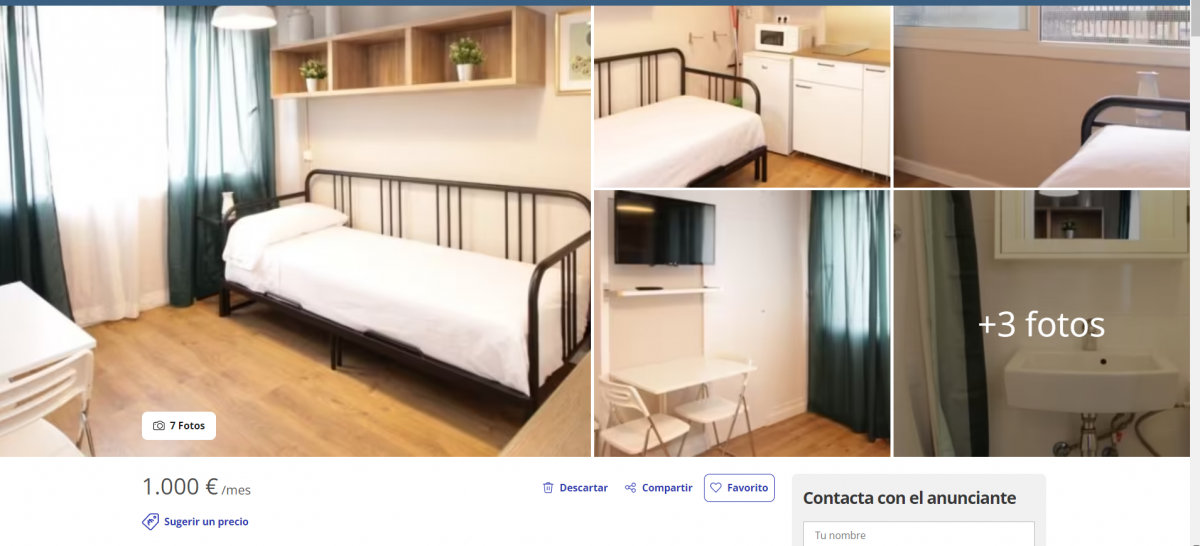 En CatalunyaPress ya más de un año recopilamoms ofertas de alquiler injustas en la capital catalana, y este martes hemos encontrado dos ejemplos que no podíamos dejar pasar. Se trata de dos habitaciones reconvertidas en apartamentos, ambas con una superficie de 25 metros cuadrados y un precio estratosférico: 1.000 euros mensuales por cada habitación. Una opción perfecta para aquellos que busquen arruinarse viviendo en un piso donde pueden cocinar sentados en la cama.