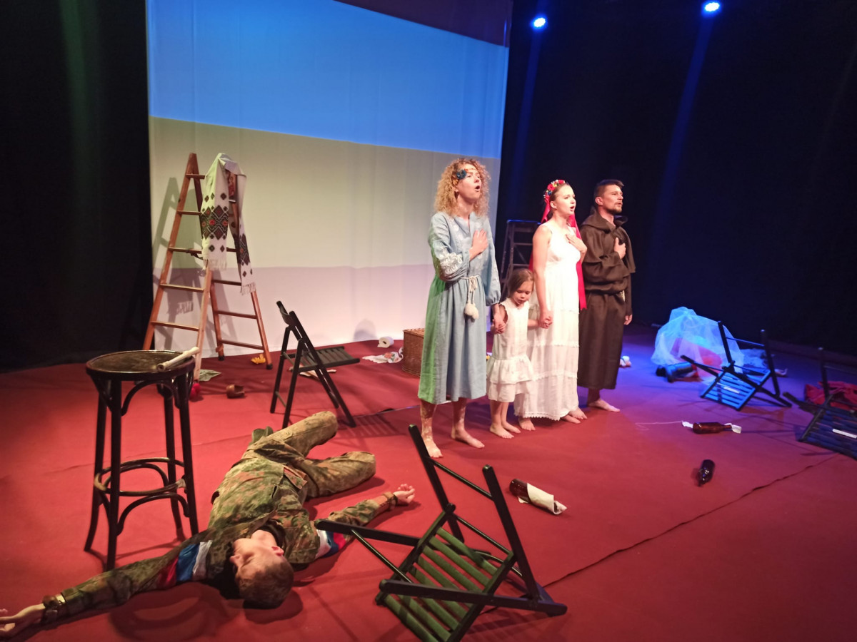 En la Gleva se representa “Em dic llibertat”, un montaje escénico sobre guión de Olena Romaniuk, que ha dirigido Yana Tereshchuk y en el que intervienen Lyubov Petlovana, Daria Tkachenko, Mykola Pashyn, Ostap Petrushchak y la niña Arina Vasylyk.