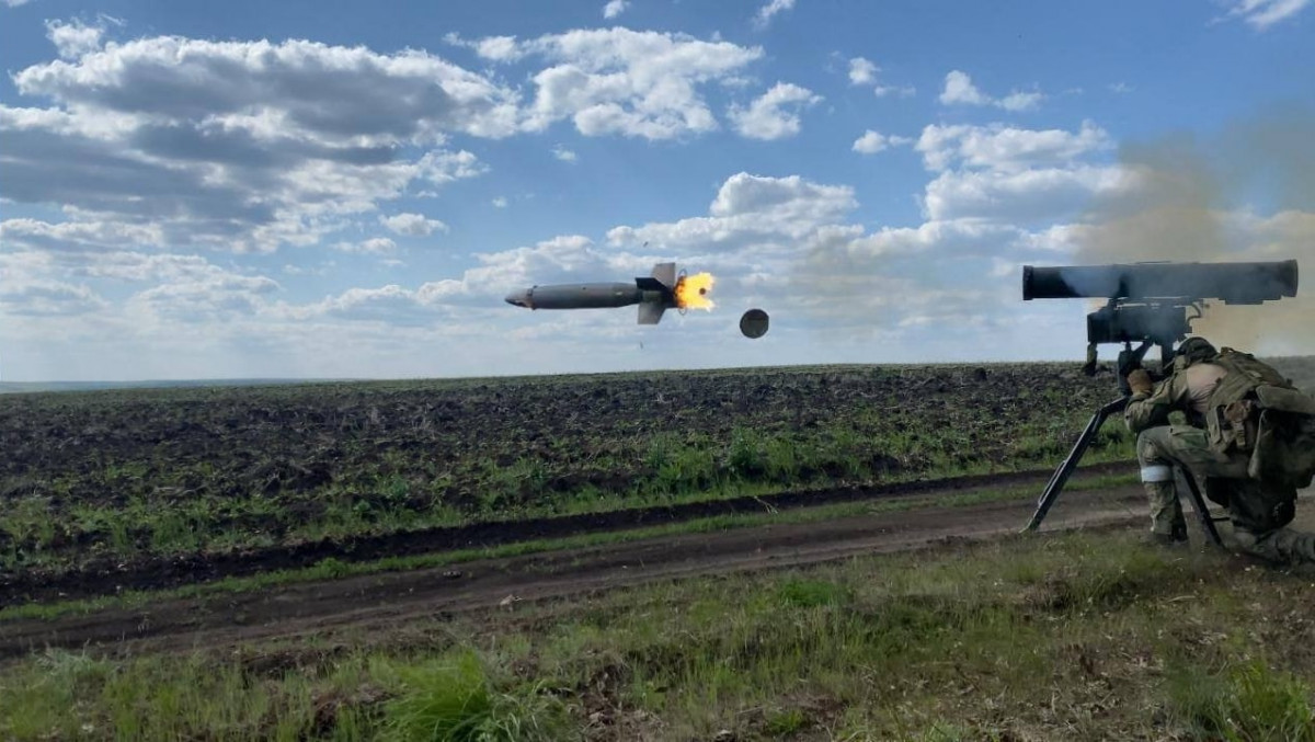 Lanzamiento de un misil guiado 9M133-1 desde el Kornet ATGM en la zona NVO
