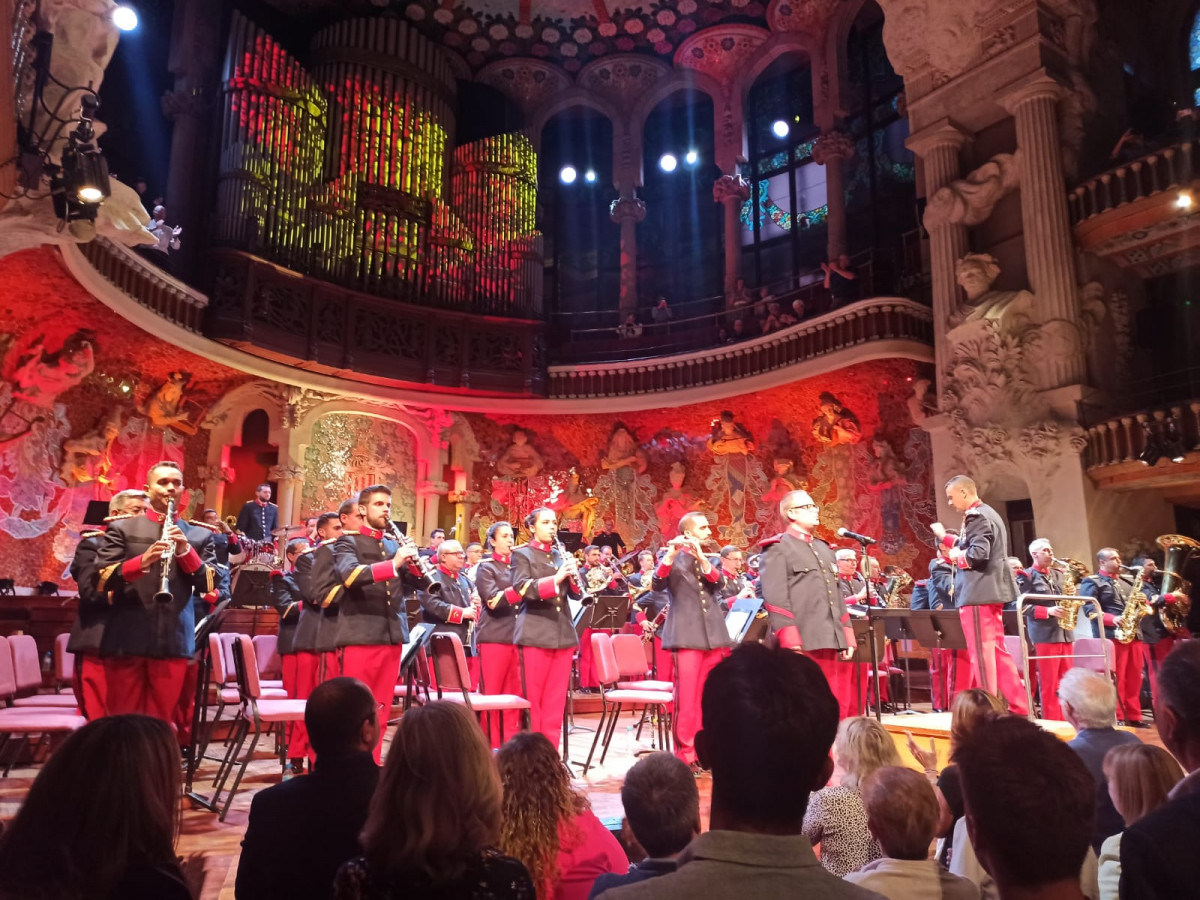 Cuenta con sesenta profesores y la dirige el teniente coronel músico Fernando Lizana Lozano que es así mismo Inspector de las unidades de música del Ejército de Tierra.El programa fue poliédrico e incluyó música clásica española –“Batalla imperial” de Cabanilles, ”El sombrero de tres picos” de Falla”-, zarzuela -“El tambor de granaderos” de Chapí-, música de cine de Morricone y Bernstein, un sardana –“La Santa espina” de Morera-, el popurrí “Fiesta en España” y temas específicamente militares como “El sitio de Zaragoza” de Oudrid, “National Emblem” de Susa, “La batalla de los castillejos” de Higinio Marín, amén de briosas marchas, tales “Los voluntarios” de Giménez y “El novio de la muerte” de Costa, pieza esta última que, cantada por el cabo Jesús López, levantó del asiento a algunos asistentes que la escucharon con diciplinada y recoleta unción.Cada pieza fue introducida por un comentario en el que se contextualizaba su origen y su vinculación con las reiteradas participaciones de los catalanes en las empresas del Ejército español (con un dato curioso: catalanes fueron los 200 primeros filiados en el Tercio de extranjeros, es decir, en la Legión).Todas las ejecuciones fueron aplaudidas fervorosamente y el maestro Lizana anunció como broche final fuera de programa una fantasía sudamericana.