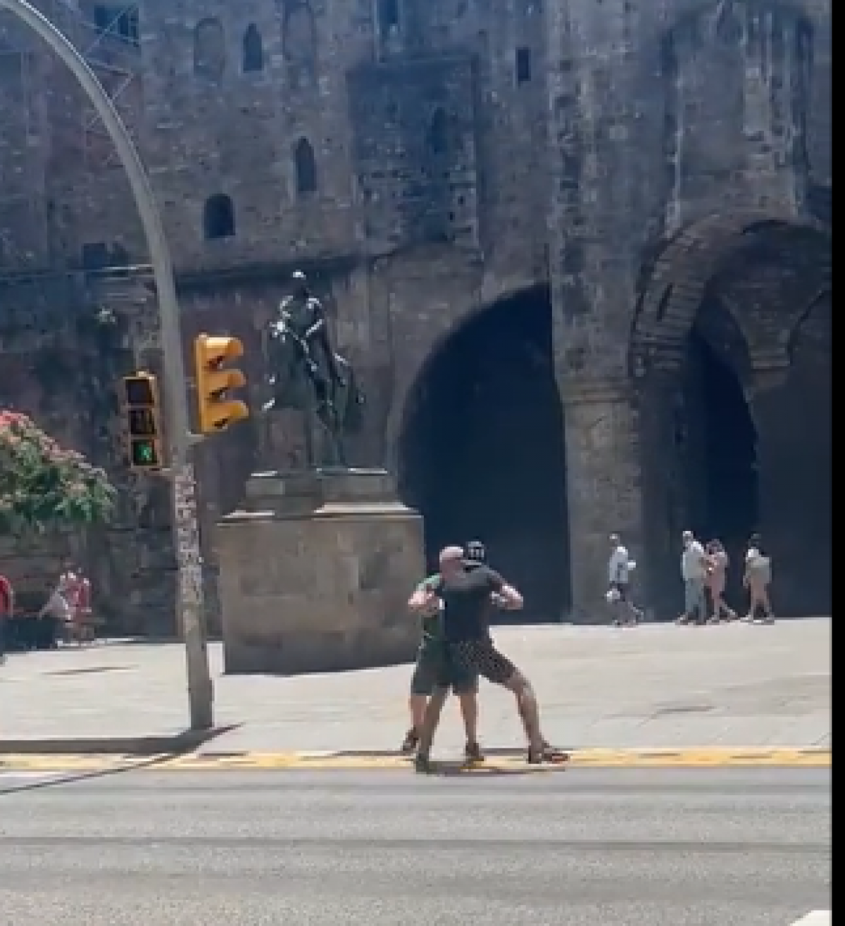 Un hombre de avanzada edad ha sido atacado en el centro de Barcelona. En mitad de un paso de zebra, un joven ha tratado de robarle sus pertenencias. La víctima se ha resistido a ser robado mientras el resto de los transeúntes y conductores visualizaban el momento sin tratar de ayudar al hombre. De momento, no hay constancia de que el delincuente haya sido detenido pero la grabación de un transeúnte posibilitará y ayudará a la actuación policial.
