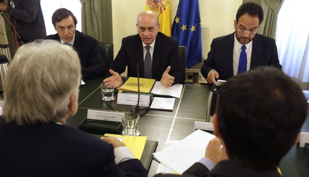 El ministro del Interior, Jorge Fernández Díaz, ha asegurado este jueves que cuando el Gobierno francés haga una petición a España para sumarse a la lucha contra el Estado Islámico (DAESH) el Ejecutivo "compartirá esta petición con las fuerzas políticas que están en el pacto antiterrorista, empezando por el PSOE".