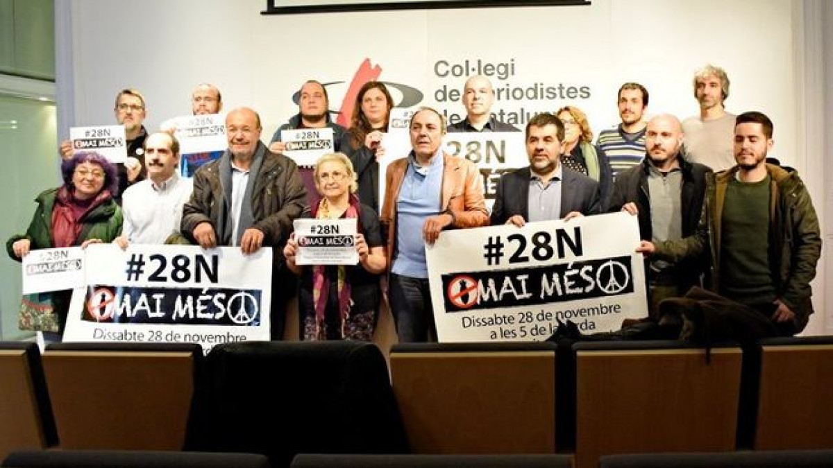El lema de la movilización, "Mai Més. Ni terrorisme, ni guerres, ni feixisme, ni retallades de llibertat. Per la pau, la justícia social i els drets humans aquí i a tot arreu", ha encabezado una marcha en la que se han leído pancartas a favor de la paz, la justicia y la libertad.