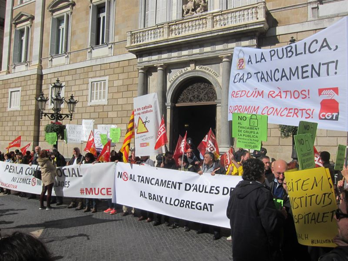 El Muce ha pedido una reunión para debatir el tema con la consellera de Enseñanza de la Generalitat, Meritxell Ruiz, contra la que se han escuchado gritos pidiendo su "dimisión", durante la concentración en Plaza Sant Jaume, que también ha contado con la presencia de representantes políticos de EnComúPodem y la CUP.
