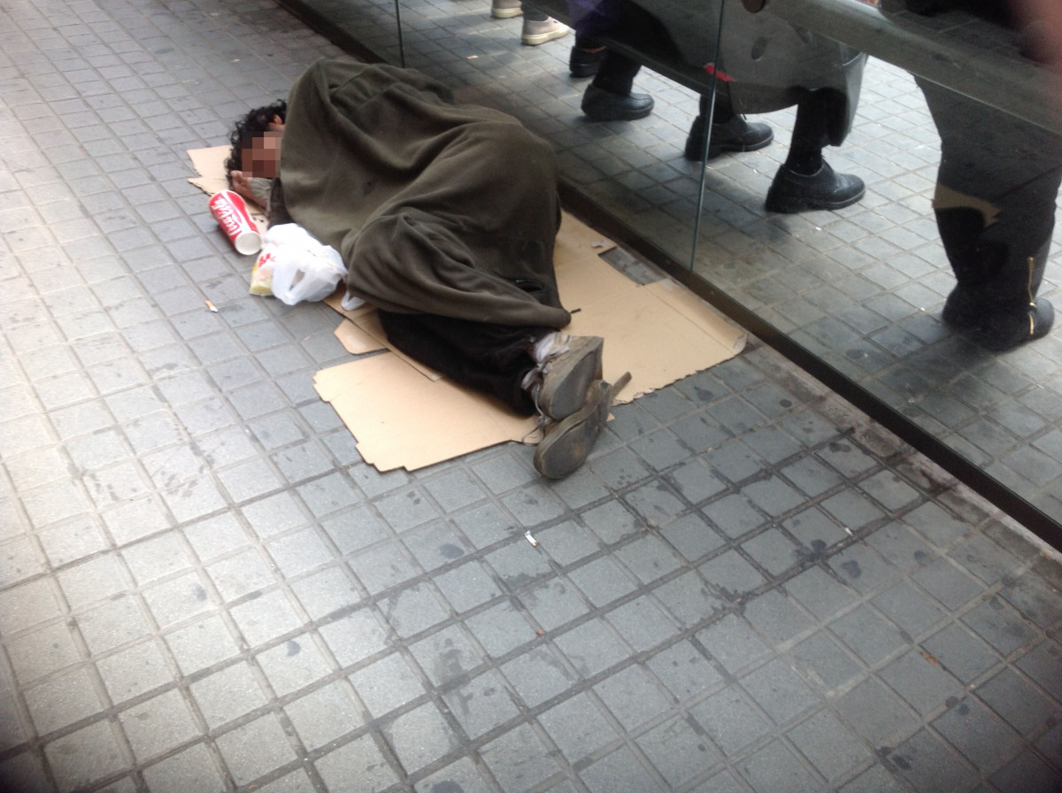 Hace dos días, CatalunyaPress denunció la presencia de personas durmiendo en el centro de Barcelona. Un ejemplo, en la esquina de Ronda Universidad con Rambla de Catalunya, como la persona que ilustra esta información.