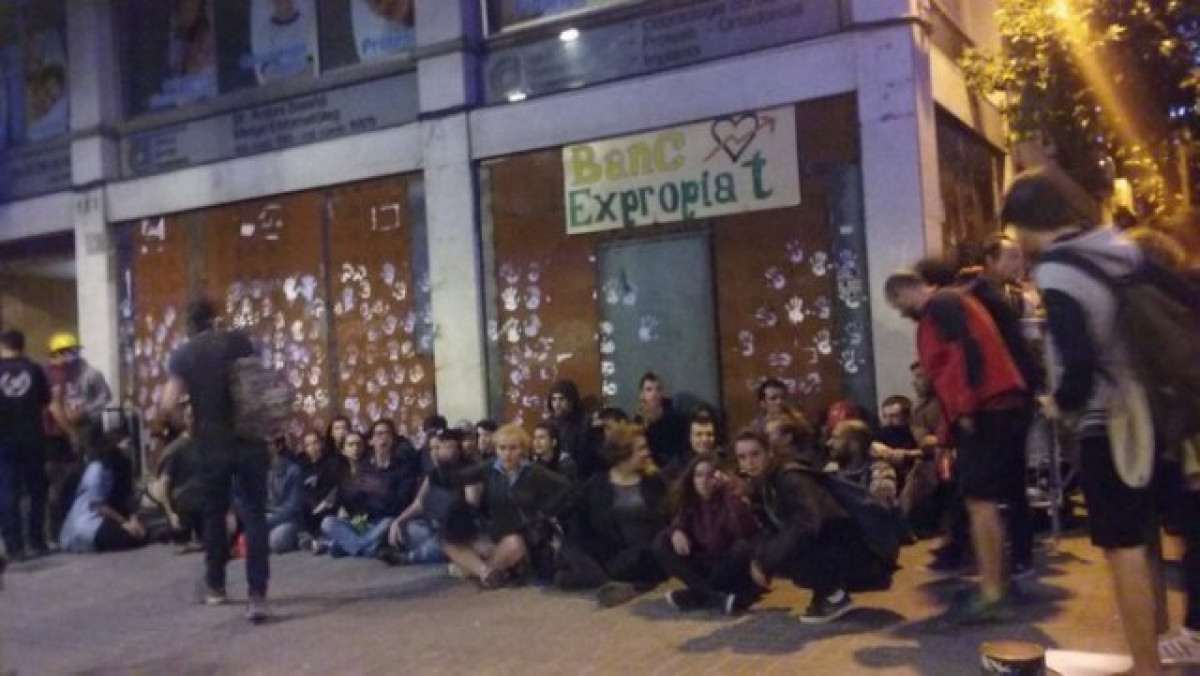 El conflicto por el autodenominado Banc Expropiat continúa en las calles del barrio de Gracia en Barcelona. De hecho, la tarde del domingo se vivió de nuevo una jornada de tensión, que ha acabado mucho más tranquila con un pequeño grupo acampado delante del local pero sin que haya habido ningún incidente. Han hecho una asamblea y han decidido que la ocupación, la harán otro día. Así pues, una despedida muy relajada, teniendo presente cómo ha ido la jornada.