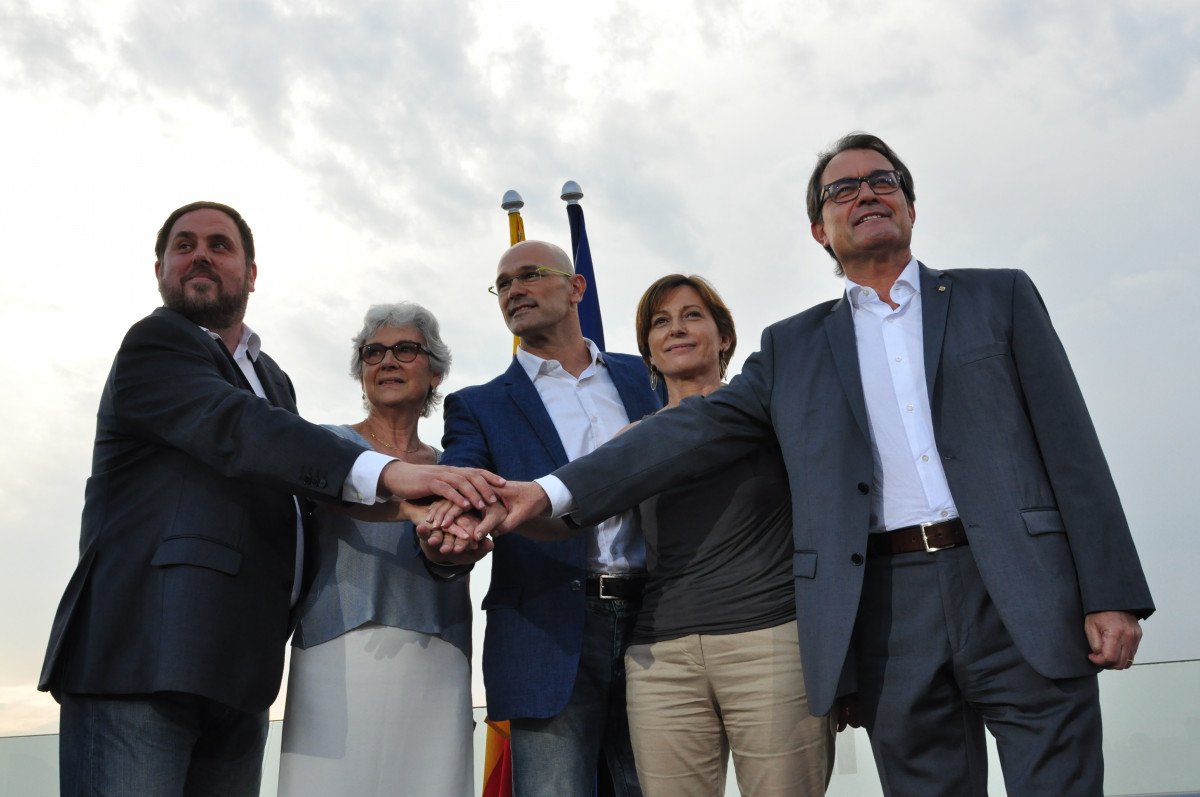 (Foto: Los pesos 'pesados' en los inicios de Junts Pel Sí. De izquierda a derecha: Oriol Junqueras, Muriel Casals --fallecida en febrero--, Raül Romeva, Carme Forcadell y Artur Mas)