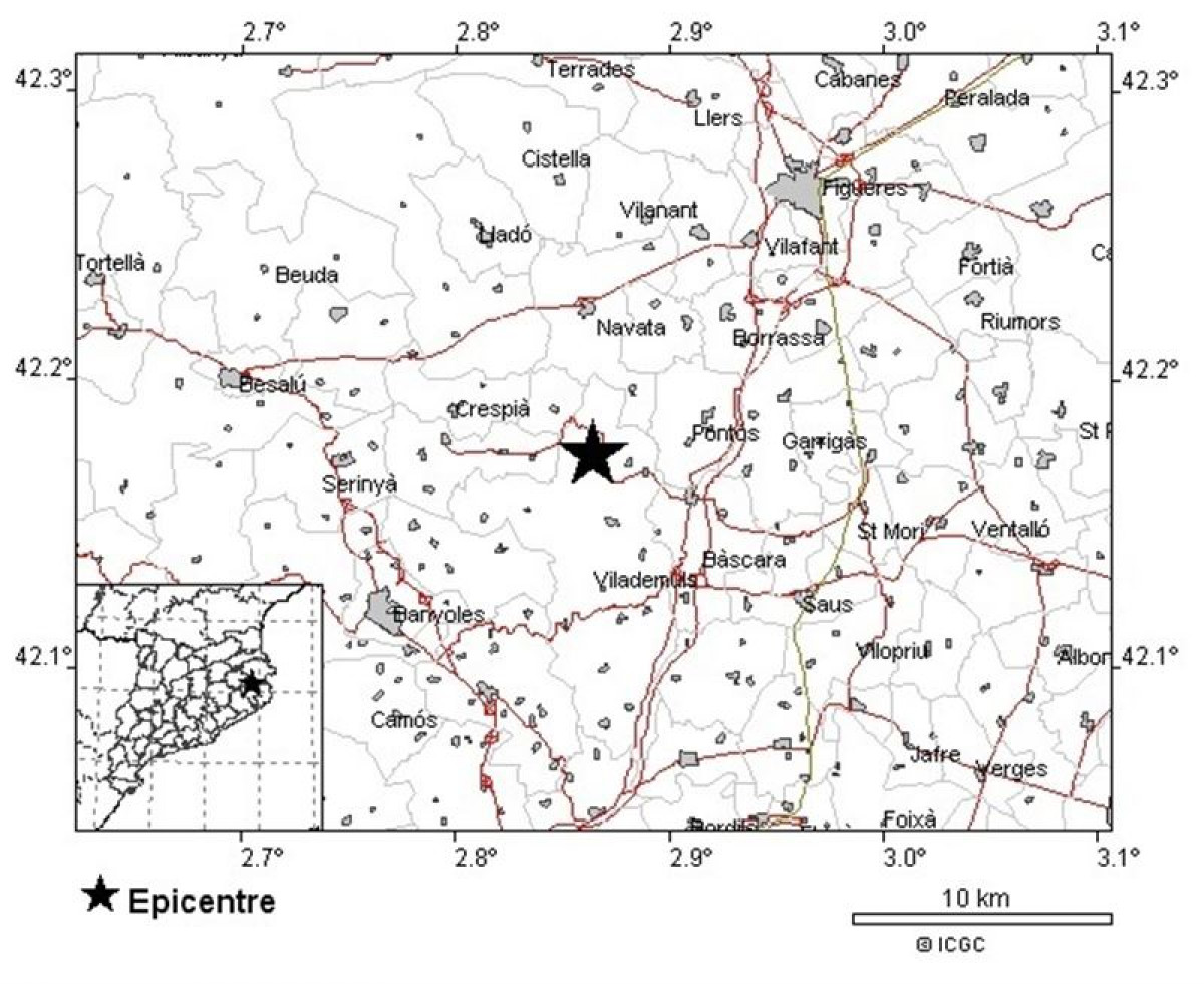 El epicentro se ha situado entre Vilafant y Banyoles, en la comarca del Alt Empordà, a una profundidad de tres kilómetros, y el teléfono de emergencias 112 ha recibido 11 llamadas relacionadas con el temblor procedentes de Girona, Figueres, Vilafant y Cornellà del Terri, entre otros municipios.