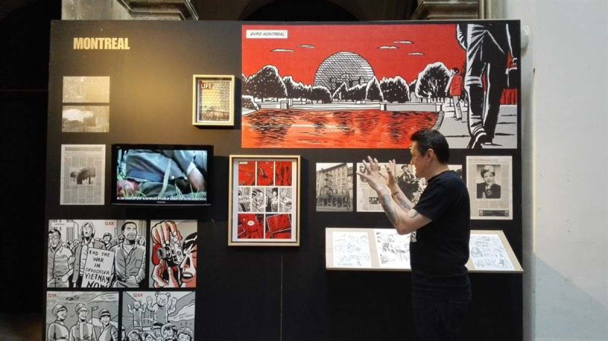 Así, hay "desde archivos fotográficos que han ayudado al autor a estructurar la historia, a dibujos originales de la novela gráfica o los materiales audiovisuales que contextualizan el panorama sociopolítico y cultural de aquel momento", ha aclarado la diseñadora de escenografía y montaje de la exposición, Sahatsa Jauregui.