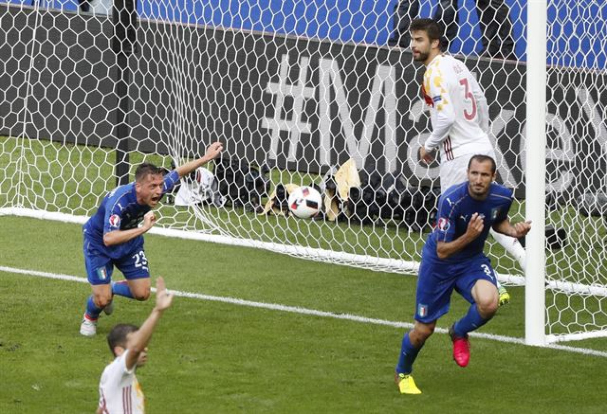 Italia quitó la corona a una irreconocible España que no podrá revalidar su título en Francia 2016, tras caer (2-0) en el partido de los octavos de final, disputado en el estadio de Saint Denis, en las afueras de París. El partido puso fin a la exitosa 'era Del Bosque', con una Eurocopa y un Mundial en su currículo.