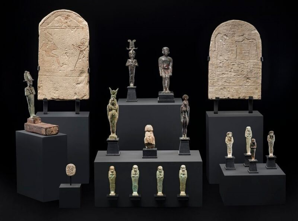 Entre las más destacadas están el 'ushebti' en bronce del faraón Psusenes I, dos estelas funerarias de piedra caliza, varias figuras de bronce de divinidades como Sejmet, Osiris y Horus, y un escarabajo en piedra de esteatita.