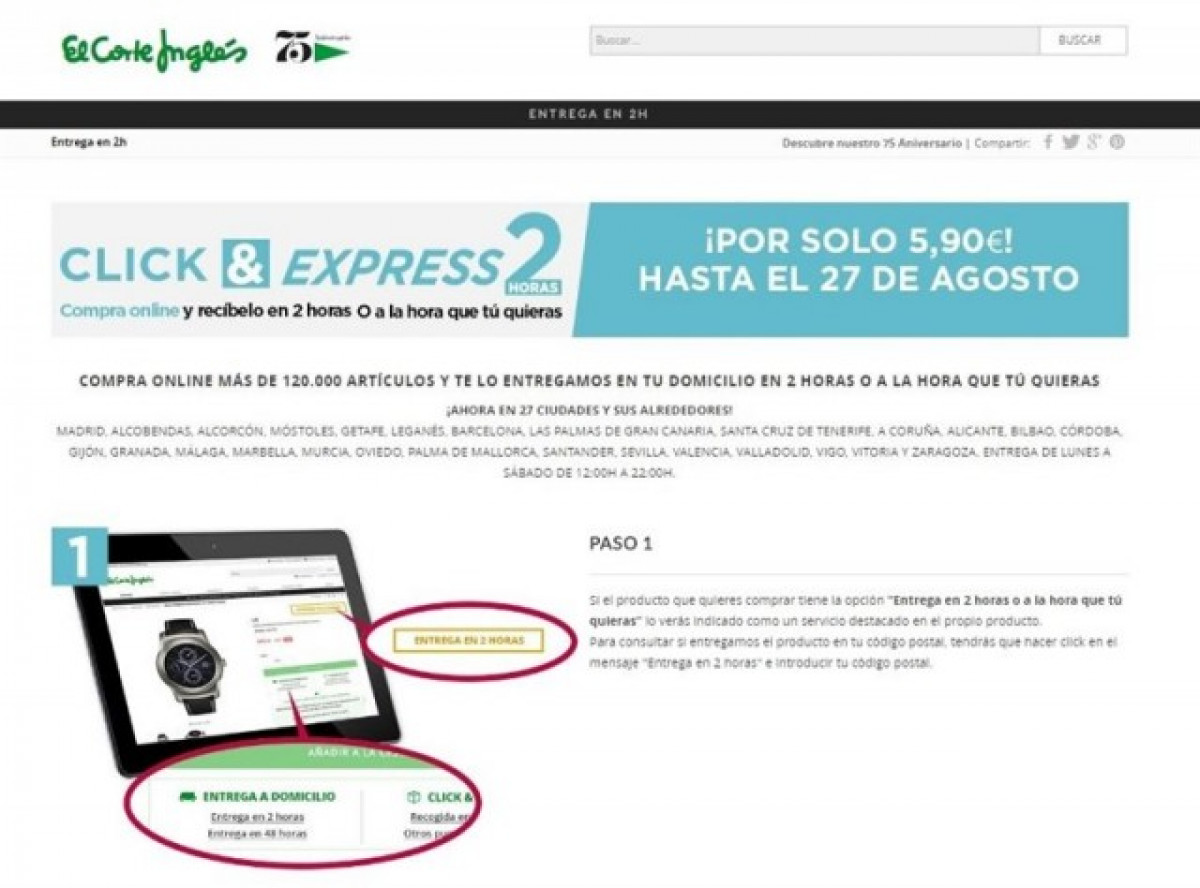 El Corte Inglés lleva sus rebajas de verano al servicio 'Click&Express' en agosto para plantar cara a Amazon, que hace unas semanas lanzó en Madrid su 'Prime now', su servicio de entregas "ultra-rápidas" para clientes 'premium'.