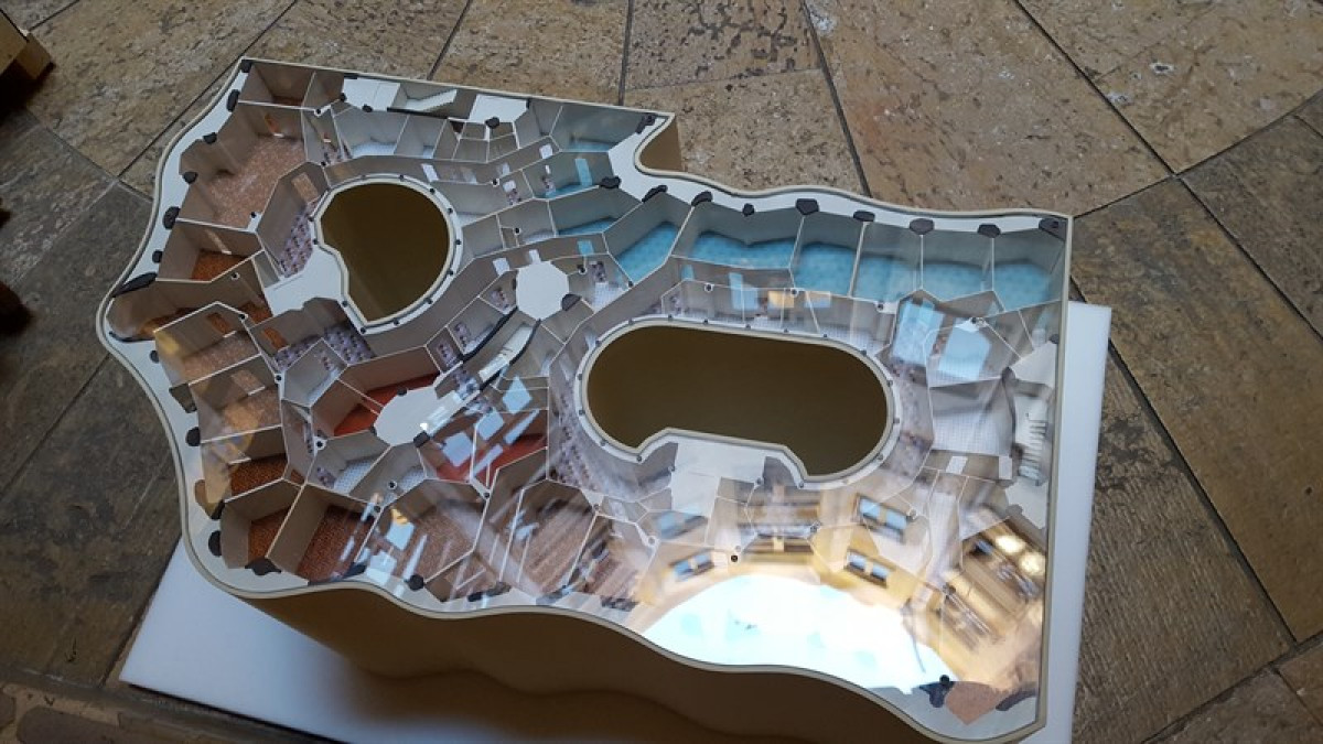 La muestra quiere reflejar la creatividad más relevante del arte y el diseño catalán del siglo XIX y principios del XX, y la maqueta cedida por la fundación reproduce el volumen exterior del edificio y las distribuciones interiores de una planta tipo.